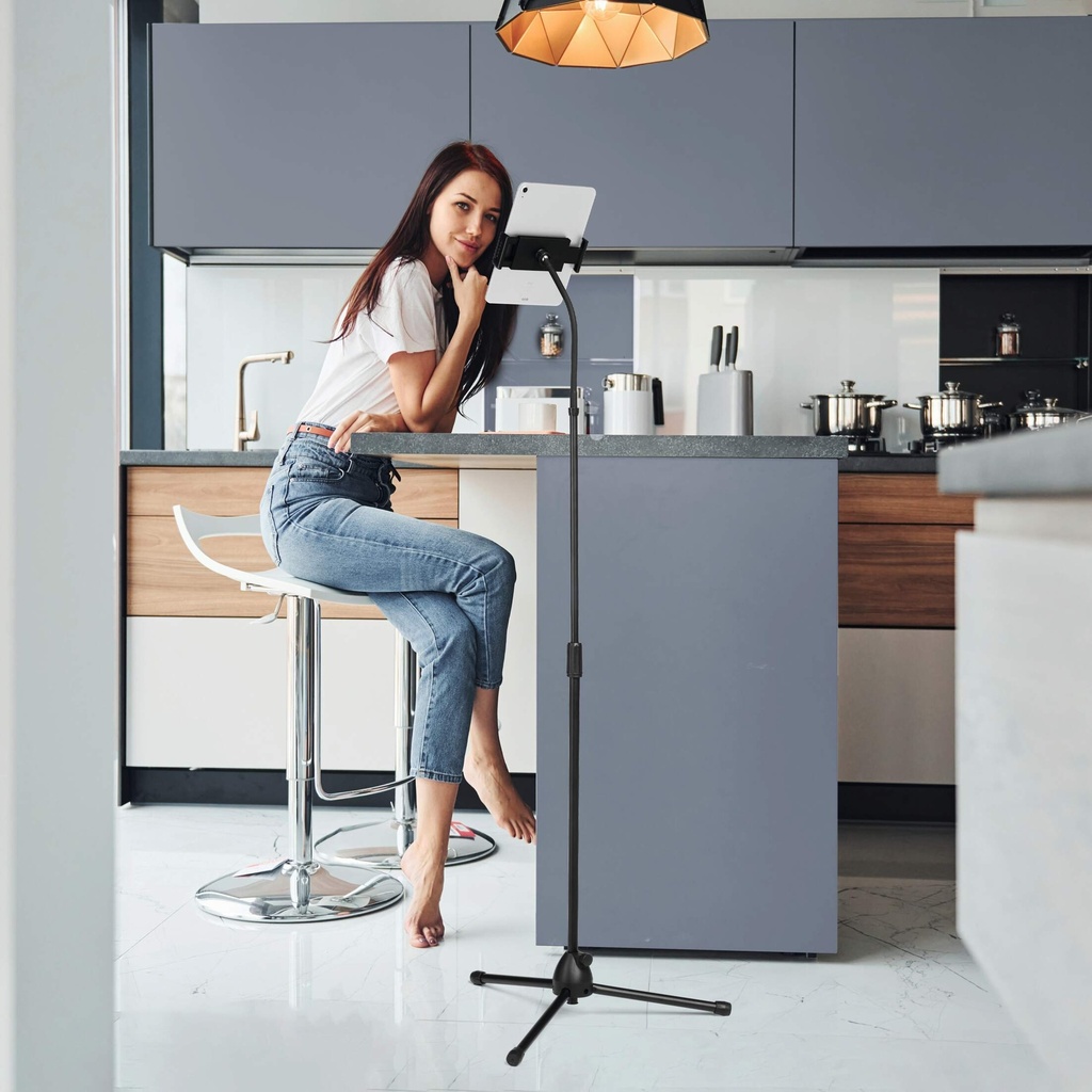 Twist Floor har ett teleskopiskt trefots golvstativ med justerbar höjd mellan 1,12 och 1,69 m. Hopfällt är golvstativet 70 cm och den medföljande väskan gör den lätt att ta med sig. Kraftig svanhals med steglös inställning av höjd och läsvinkel som stannar i önskat läge. Av metall och ABS-plast. 100% återvinningsbar.